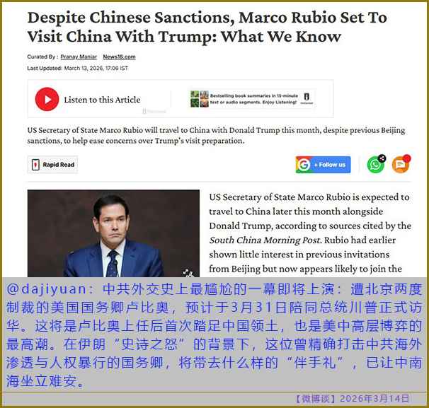 [微博谈 2026/03/14] 不会又说正在下大棋了吧